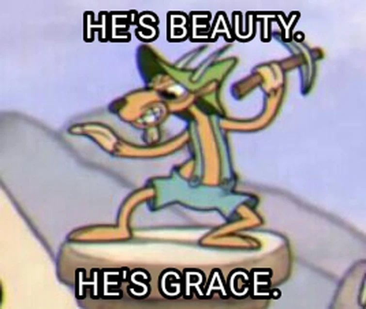 Hes beauty hes grace. Hes beauty hes grace he falls right on his face. Hes beauty Hes grace Hell hit you in the face. Hes beauty hes grace.